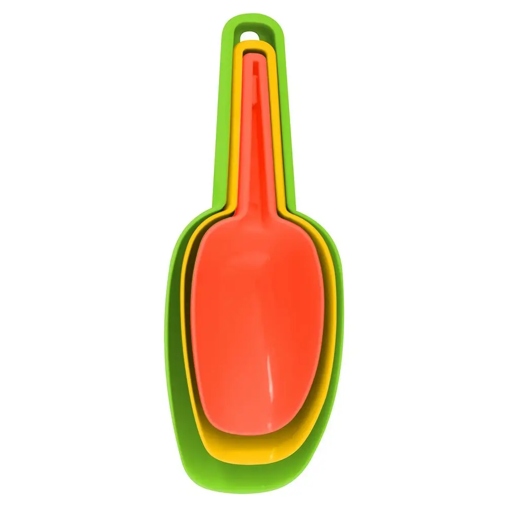Ложки-черпаки станут незаменимым помощником на вашей кухне. Предназначены для пересыпания сыпучих продуктов: муки, соли, сахара, соды, специй и прочих ингредиентов. Удобны в хранении, так как укладываются друг в друга и не занимают много места. Изготовлено: пластмасса (полипропилен). Длина: 16см, 18см, 21см.