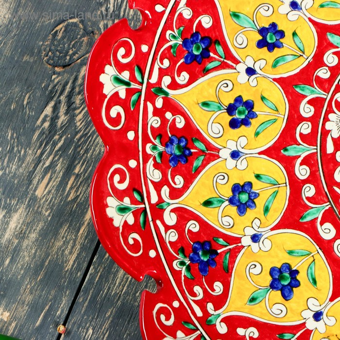 Ляган Риштанская Керамика "Цветы", 42 см, красный, рифлённый