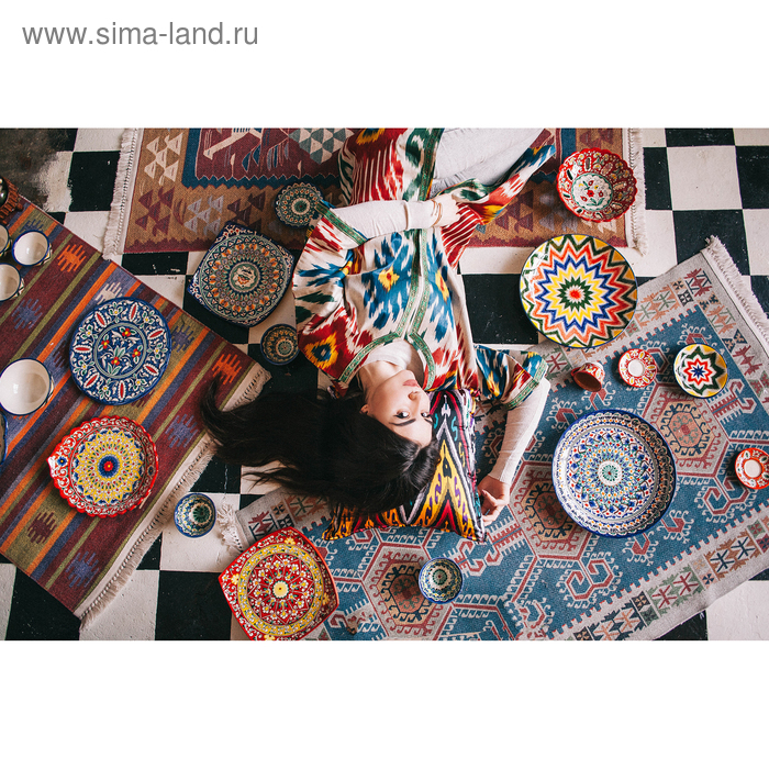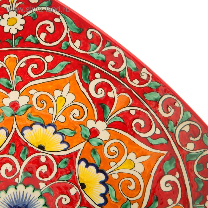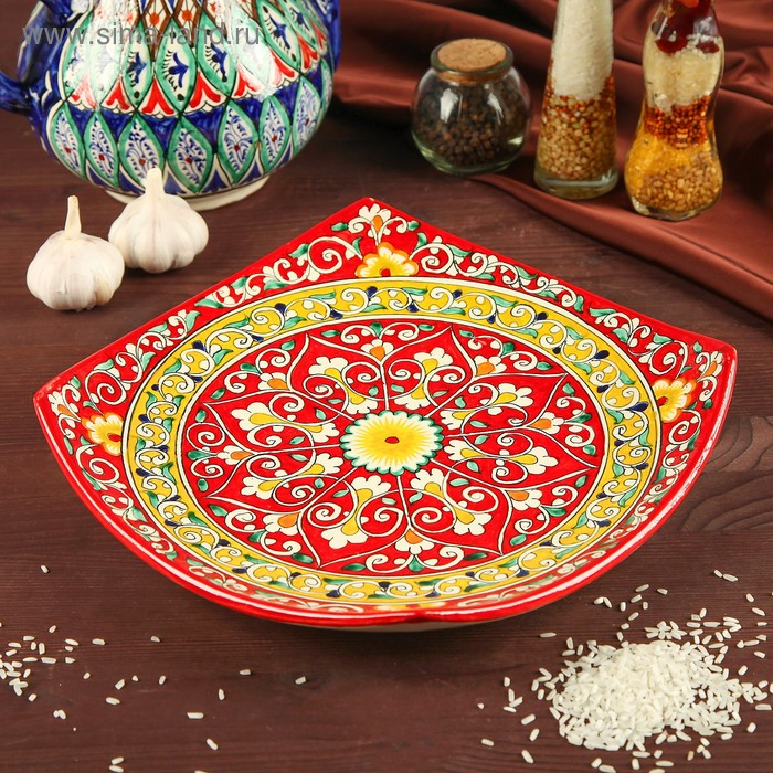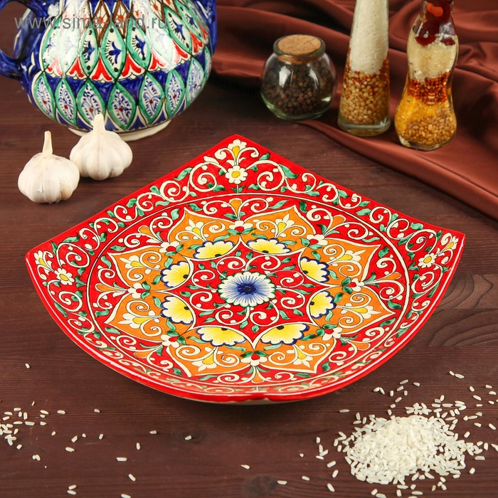 Ляган Риштанская Керамика "Узоры", 31 см, квадратный, красный микс