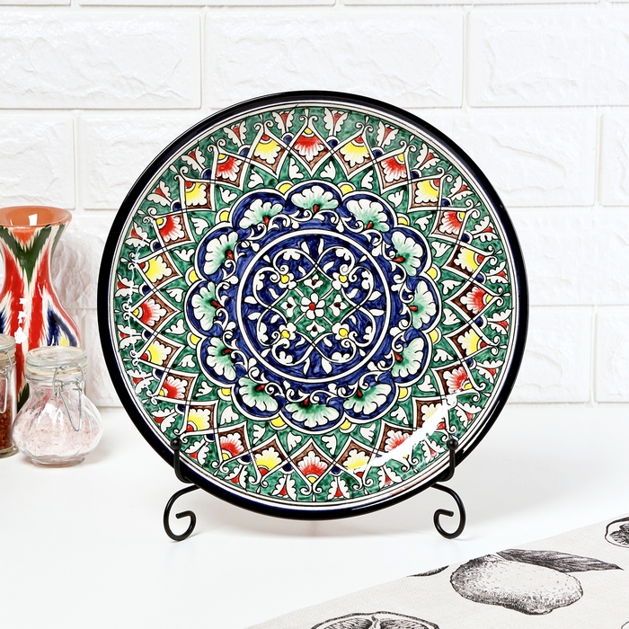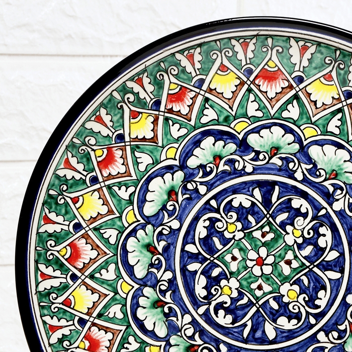 Ляган узбекский Риштанская керамика "Узоры " для плова, 28 см, в подарочной упаковке