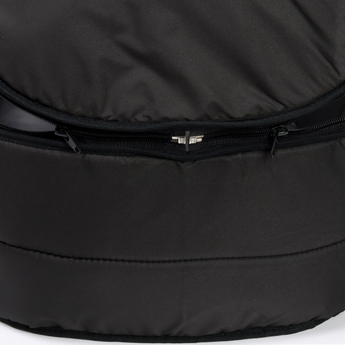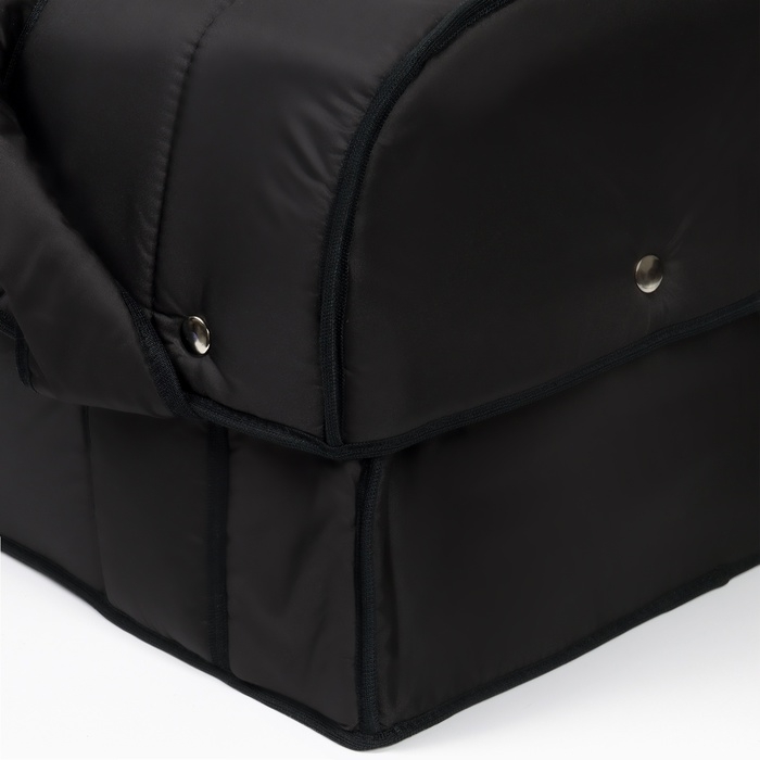 Люлька-переноска из плащевой ткани со съемным капюшоном. Капюшон крепится к сумке на 3 кнопки. Крышка съемная, пристегивается к сумке на разъемную молнию. По крышке выполнена стежка 2 мя фигурными строчками. Все срезы обработаны окантовочной тесьмой. В днище сумки есть карман под жесткий вкладыш-дно. Подкладка таффета, наполнитель поролон, синтепон. Бортики у люльки не жесткие, специально, что бы можно было переноску вставлять в коляску. Размер 30х68см. Высота борта 16см. Глубина капюшона 16см. Состав: п/э 100%.