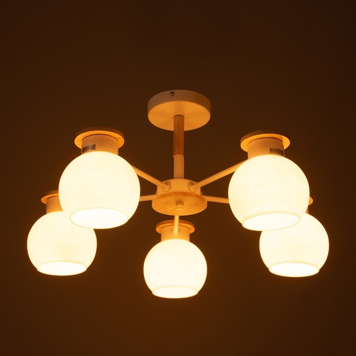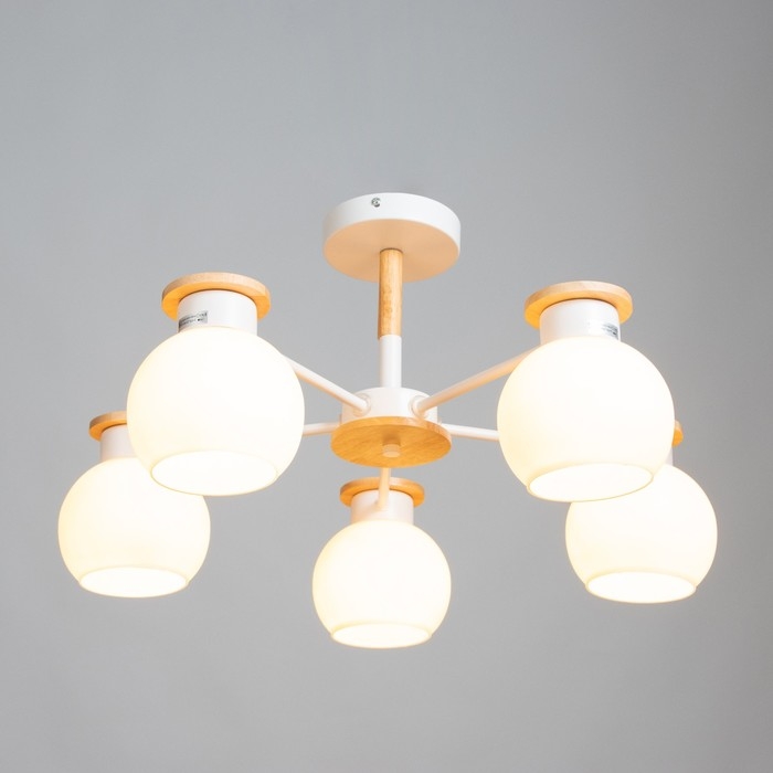 Люстра "Паула" 5х60Вт Е27 Белый, дерево 58х58х30см