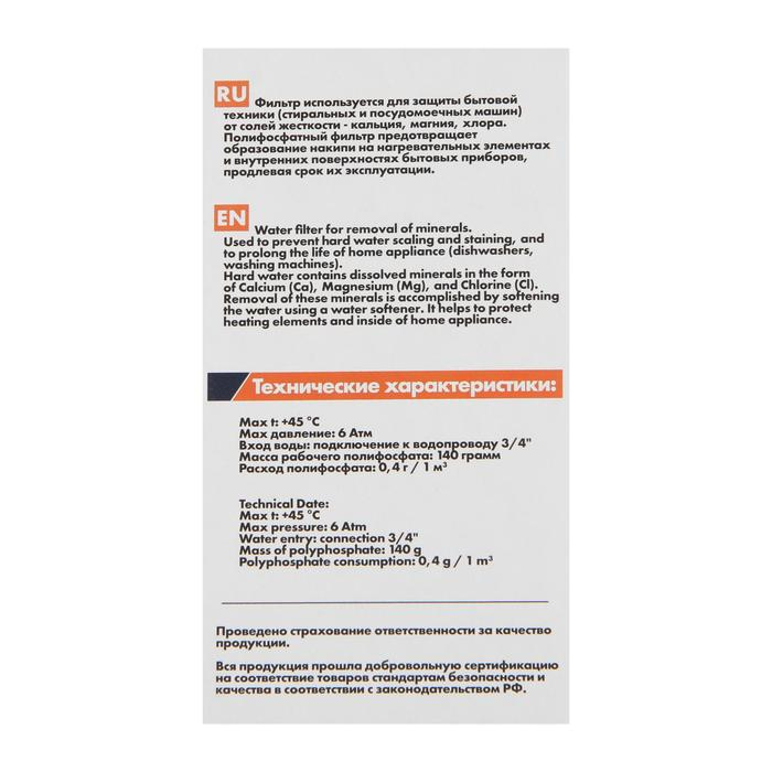 Магистральный фильтр Unicorn WM34, для стиральных машин, насыпной