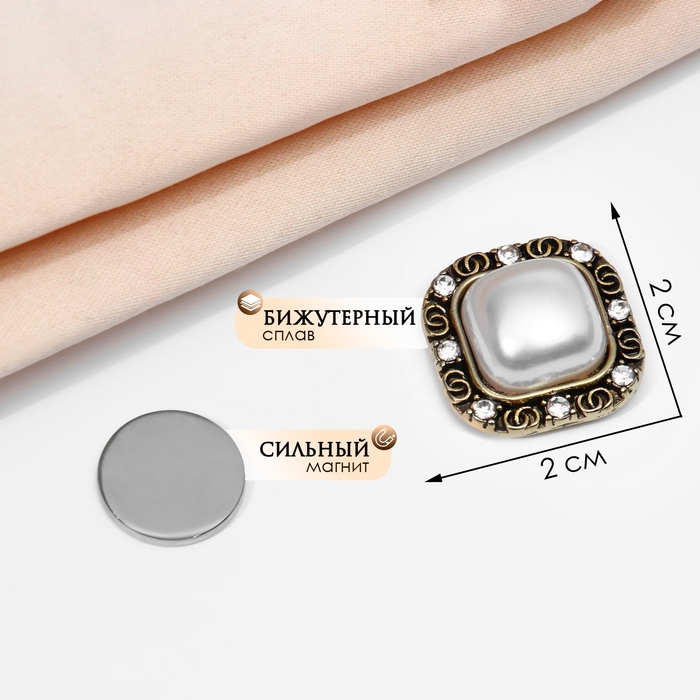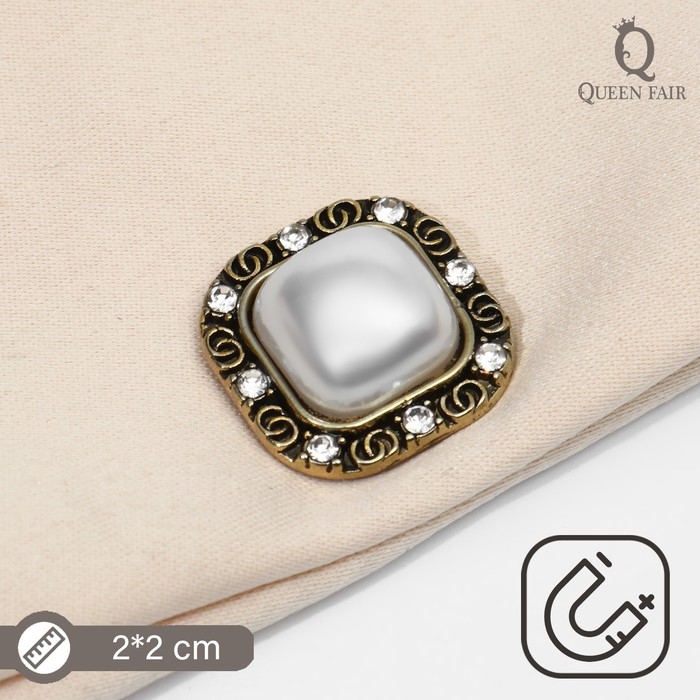 Магнит для платка «Жемчужина» квадрат, цвет белый в чернёном золоте