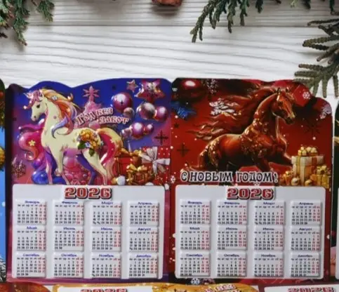 Этот календарь-магнит не только поможет вам быть в курсе всех важных дат, но и создаст праздничное настроение в вашем доме, даче или офисе. Он станет не только предметом интерьера, но и замечательным сувениром, символизирующим 2026 год - год Лошади.