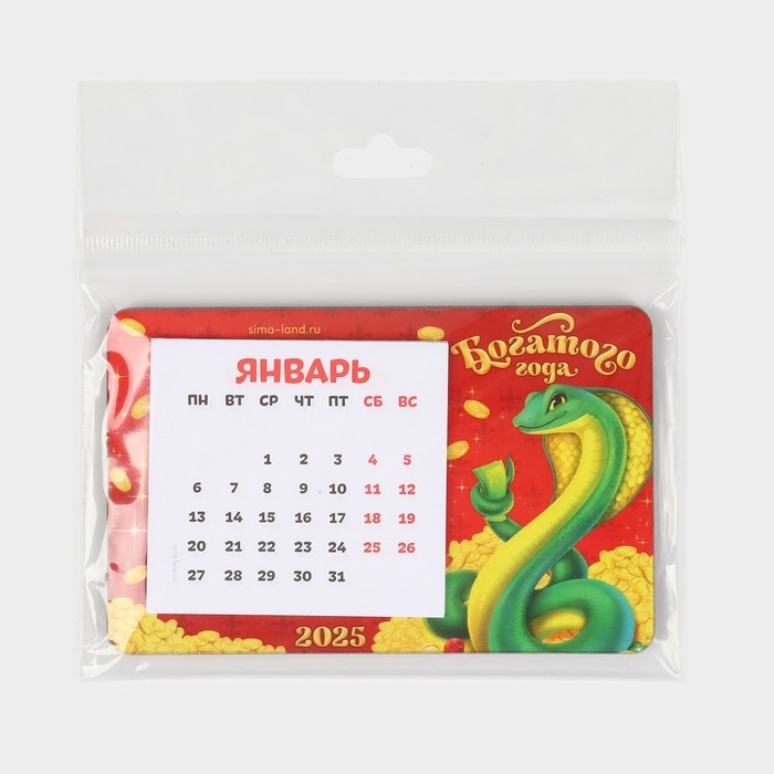 Магнит новогодний дерево с календарем «Новый год: Богатого года», 7 х 11 см