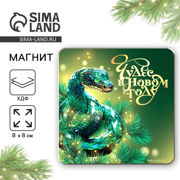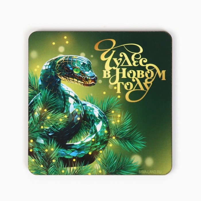 Магнит новогодний деревянный «Новый год: Чудес в новом году», 8 х 8 см