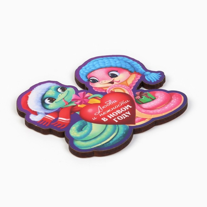 Магнит новогодний деревянный «Новый год: Любви и нежности», 8 х 7.1 см