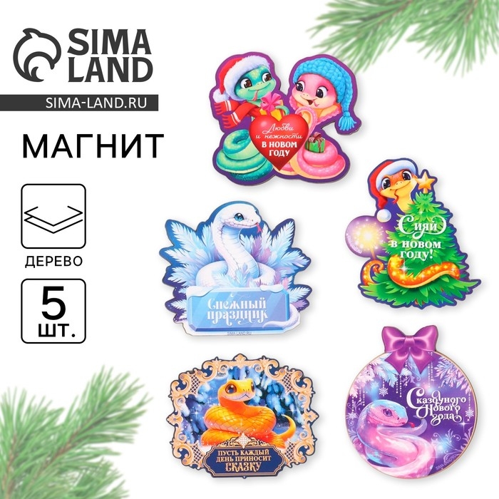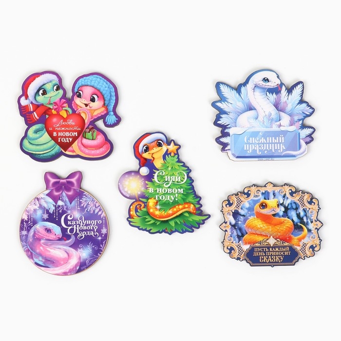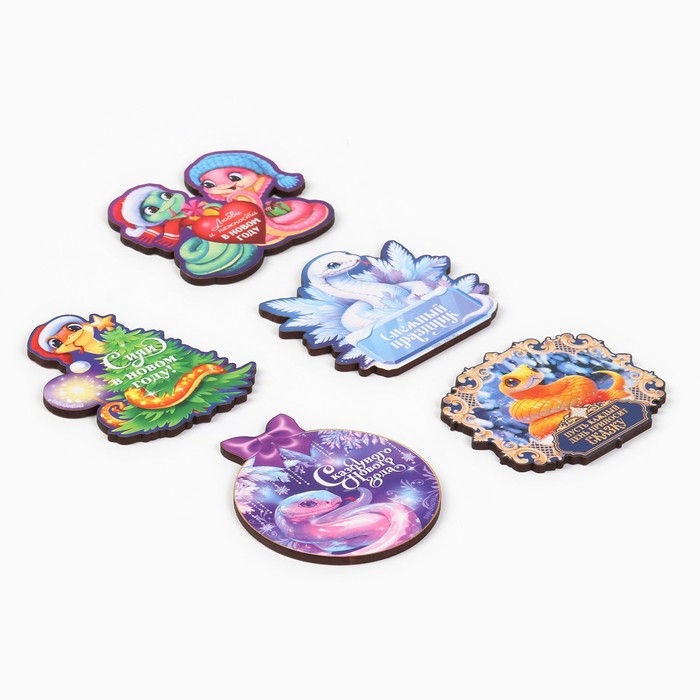 Магнит новогодний деревянный «Новый год: Сказочного года», МИКС из 5 шт