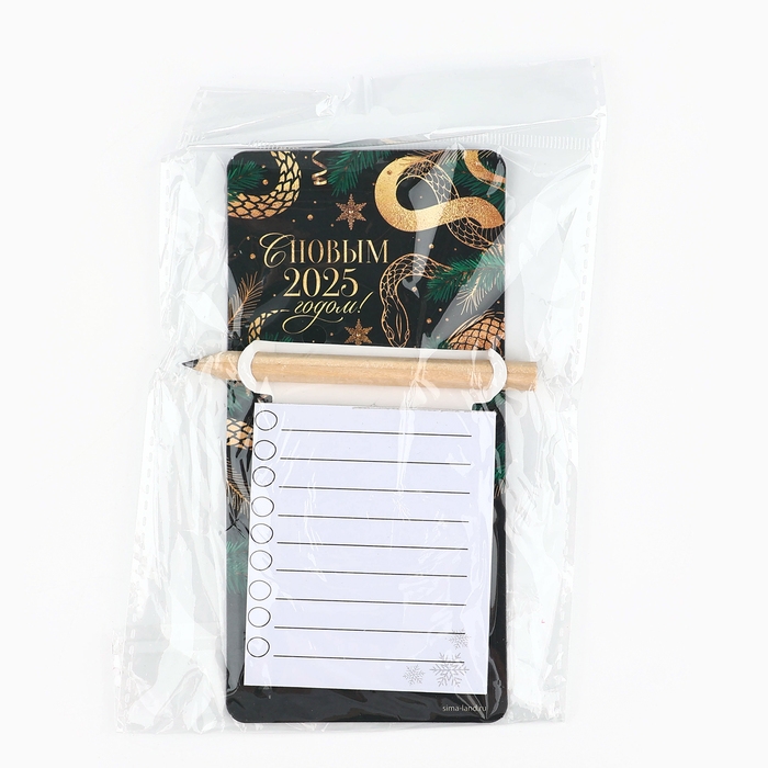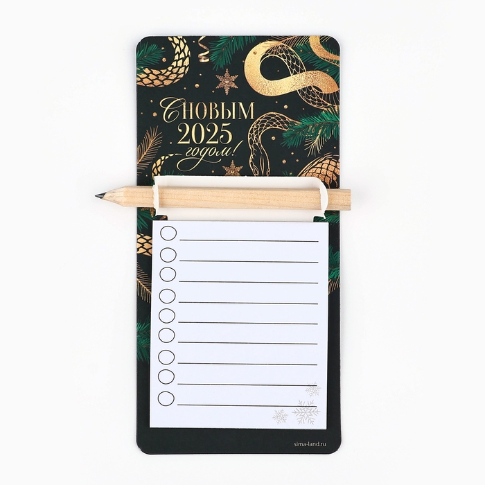 Магнит новогодний с блоком для записи и карандашом «Новый год: 2025 год», 7 х 14,4 см