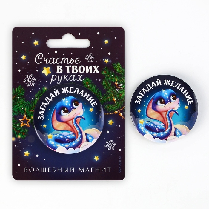 Магнит новогодний закатной «Новый год: Счастье в твоих руках», диам. 5 см