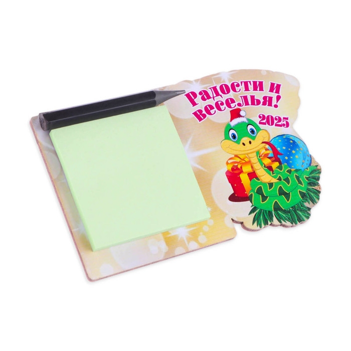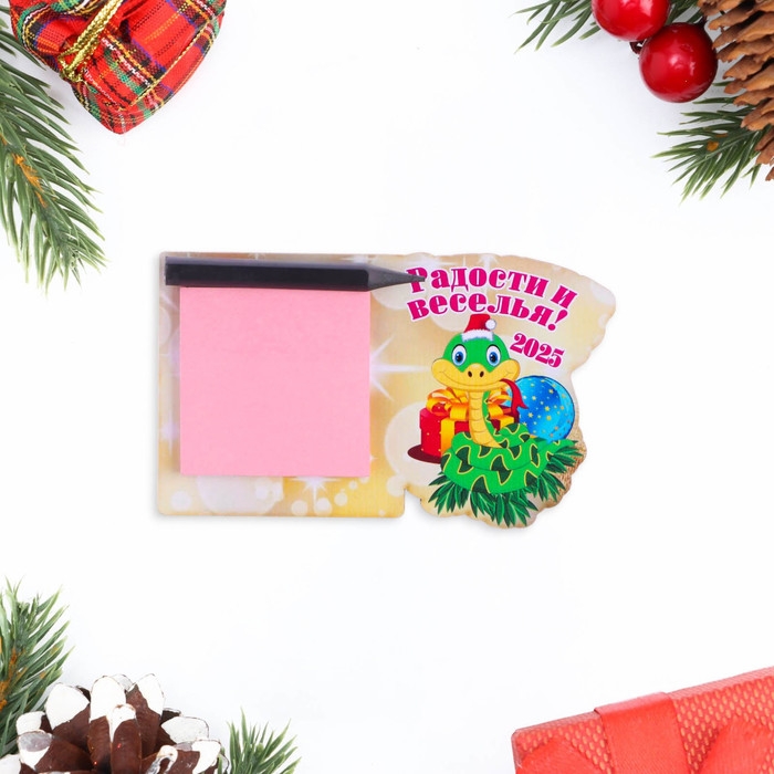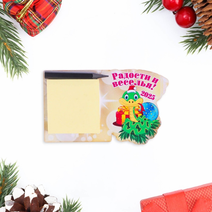Магнит новогодний, змея, с блоком для записи "Радости и веселья!" символ года, подарок