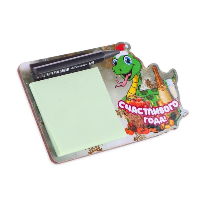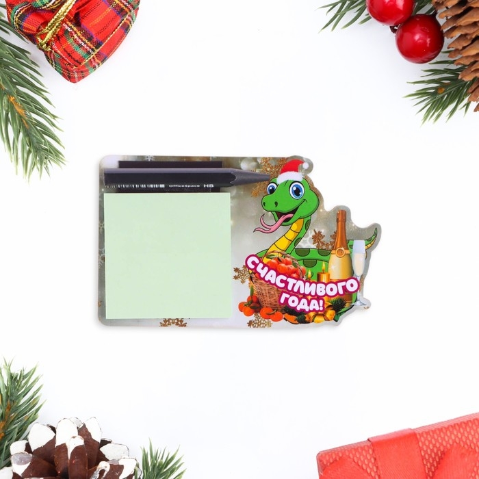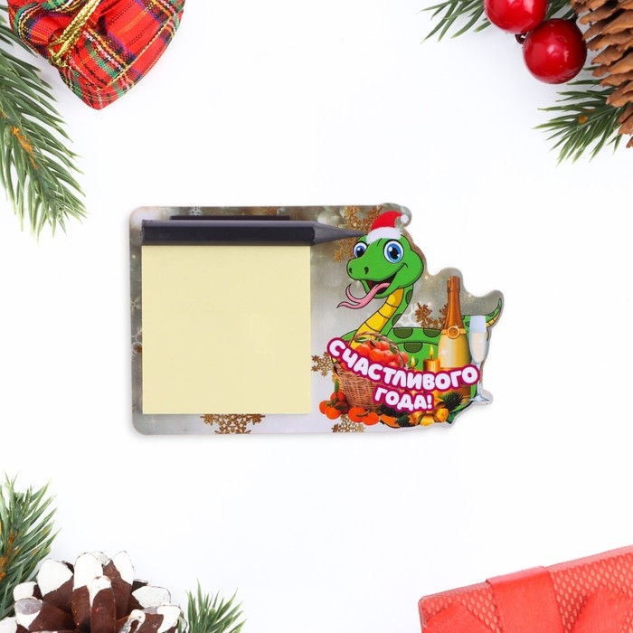 Магнит новогодний, змея, с блоком для записи "Счастливого Нового Года!" символ года