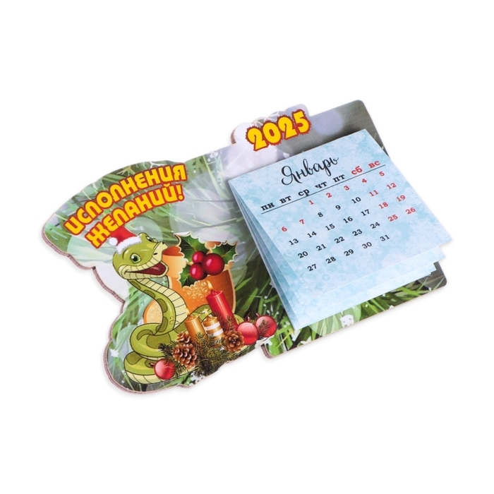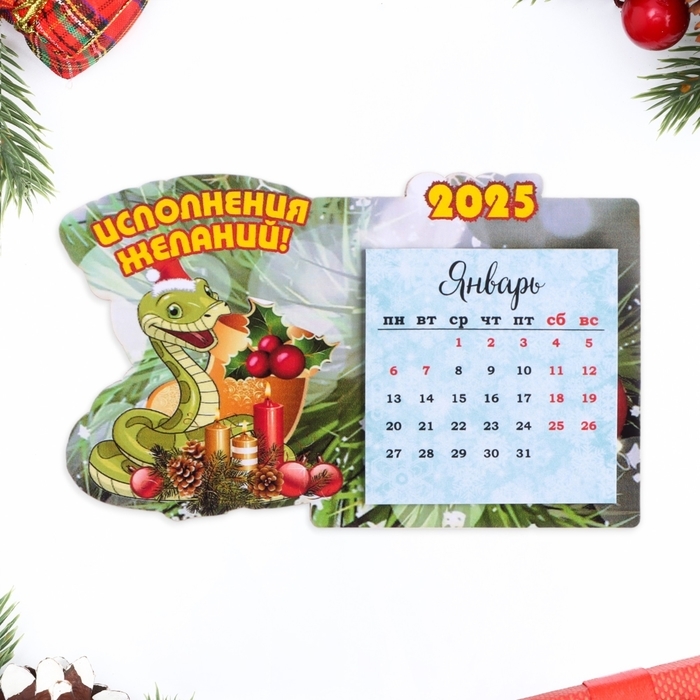Магнит новогодний, змея, с календарем "Исполнения желаний!" символ года, свеча