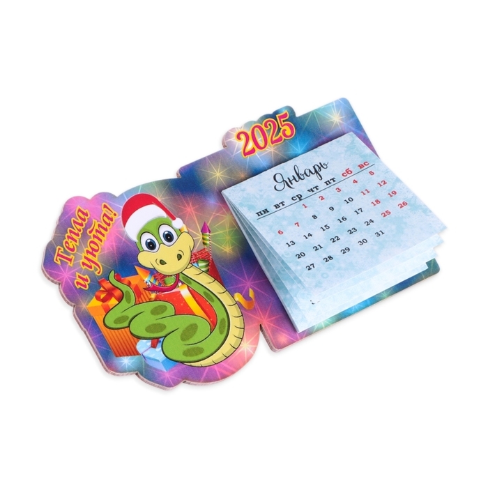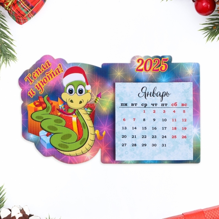 Магнит новогодний, змея, с календарем "Тепла и уюта!" символ года, подарки