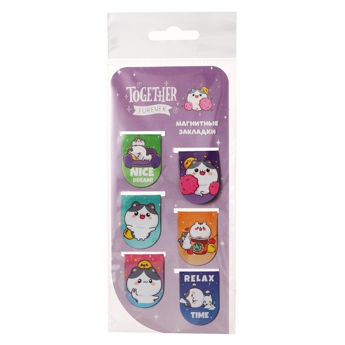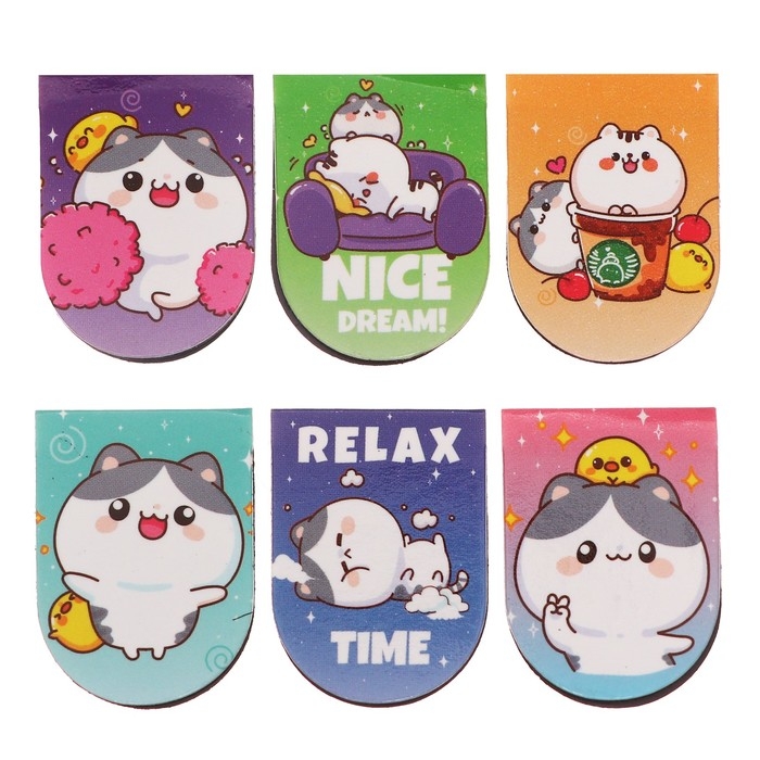 Набор магнитных закладок для книг Calligrata 6 штук, "Кошки", МИКС