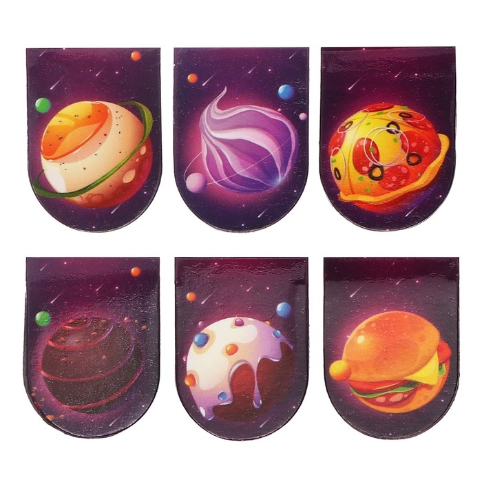 Набор магнитных закладок для книг Calligrata 6 штук, "Фрукты/Ягоды", МИКС