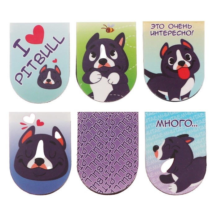 Магнитные закладки 6 штук "Мой милый Pitbull"