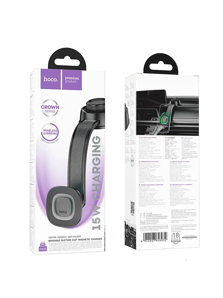 HW31 Магнитный автомобильный держатель для беспроводной зарядки Crown (центральная консоль)