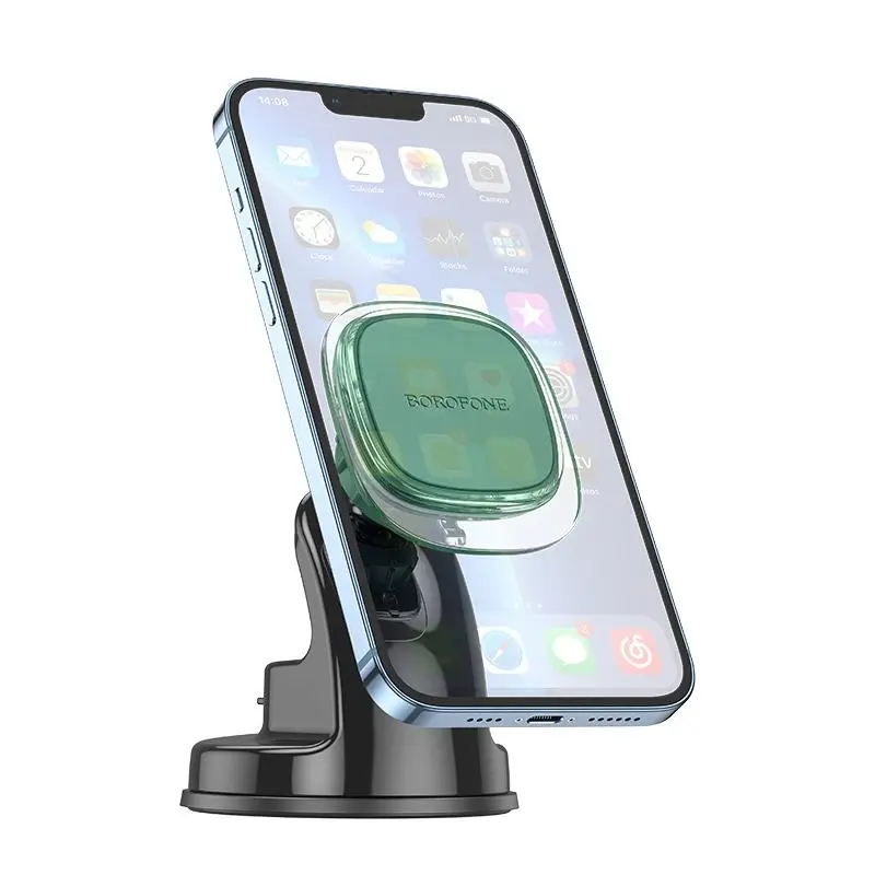 Магнитный держатель для телефона с креплением на приборную панель или лобовое стекло. Основание на двустороннем скотче, мощные магниты и металлические пластины обеспечивают надежную фиксацию. Поворотный механизм 360° для идеального угла обзора.