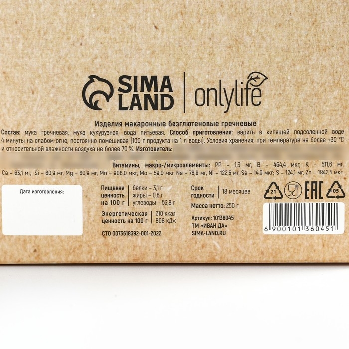 Макароны гречневые безглютеновые, паста, 250 г.