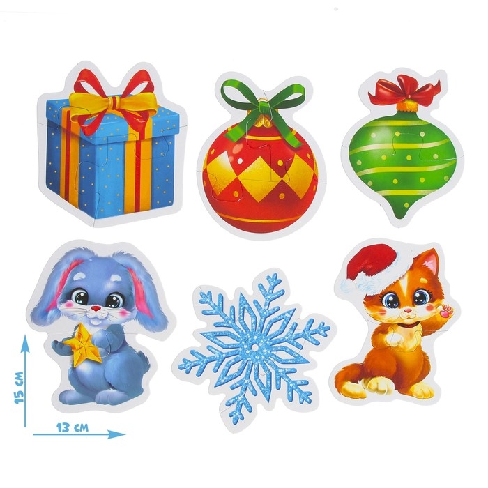 Макси-пазлы «Украшаем ёлочку», 6 пазлов, 15 деталей