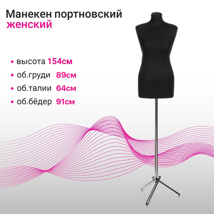 Манекен портновский на хромированной стойке «Женский» 46-48, 89×64×91 см цвет чёрный