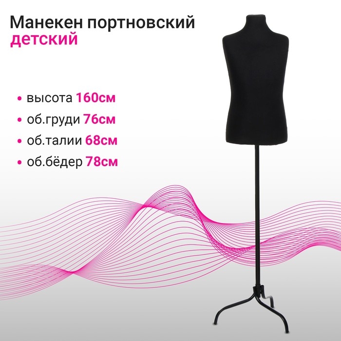 Манекен портновский на стойке «Детский» 76×68×78 см, длина 55, цвет чёрный