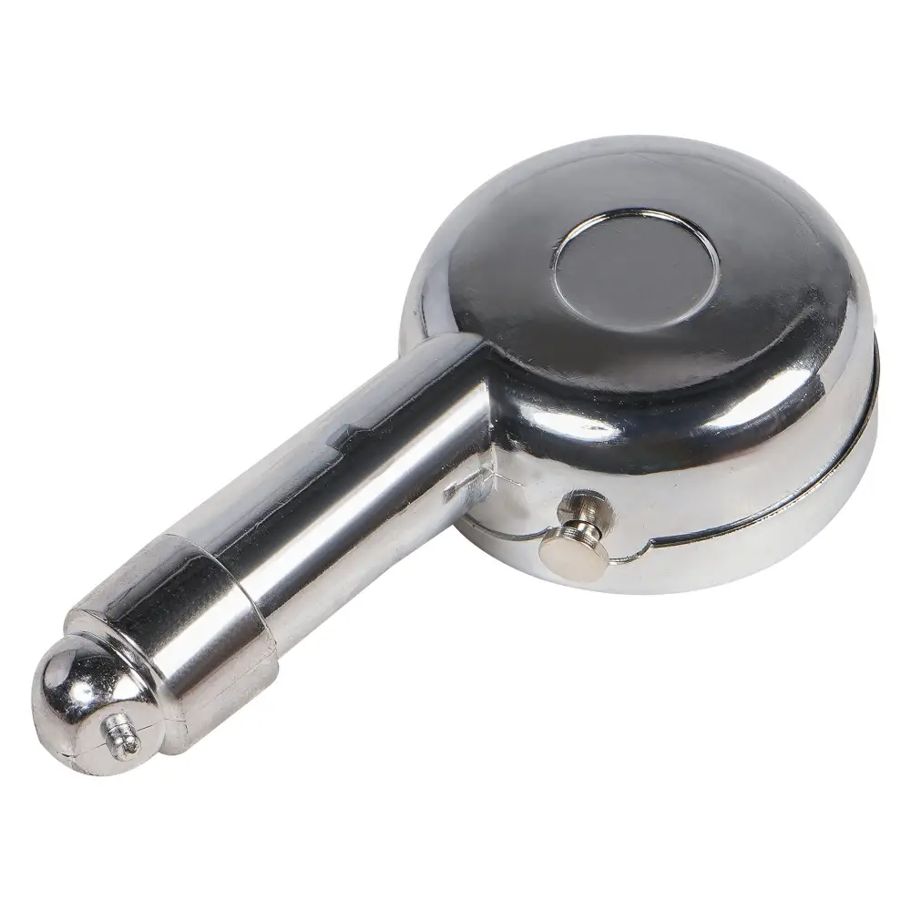 Устройство для измерения давления в шинах автомобиля. Манометр имеет прочный металлический корпус с защитным хромовым покрытием.