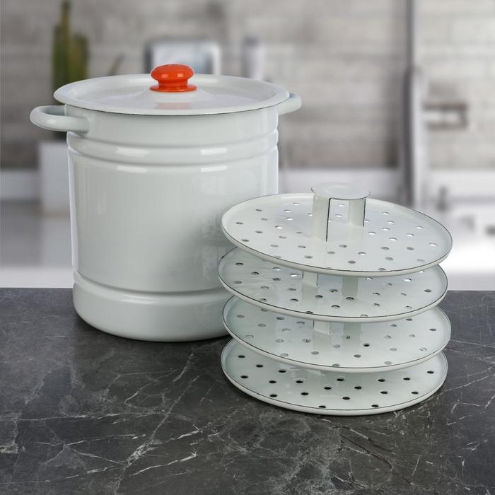 Мантоварка эмалированная «Позница», 7,5 л, 2 вставки, цвет белый