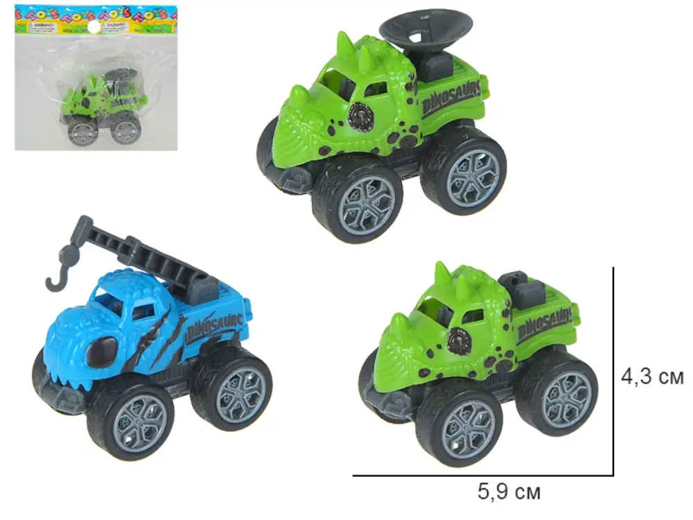 Машина Динозавр 3 вида в ассорт., в пак. Размер 5,9 см