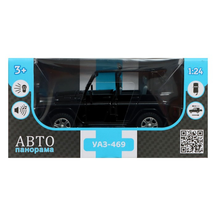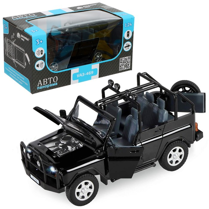 Машина метал «УАЗ-469» 1:24 инерция, цвет чёрный, открываются двери, капот и багажник, световые и звуковые эффекты