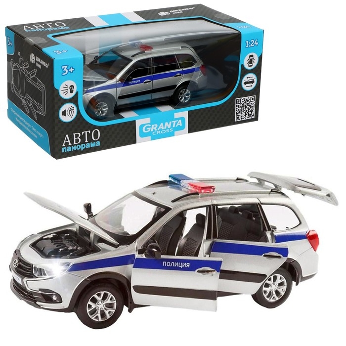 Машина металлическая «Lada Полиция» 1:24, цвет серебряный, открываются двери, капот и багажник, световые и звуковые эффекты