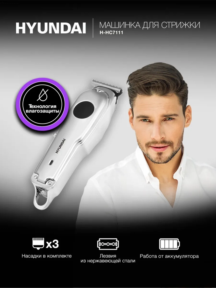 Машинка для стрижки Hyundai H-HC7111 серебристый/черный 5Вт (насадок в компл:3шт).