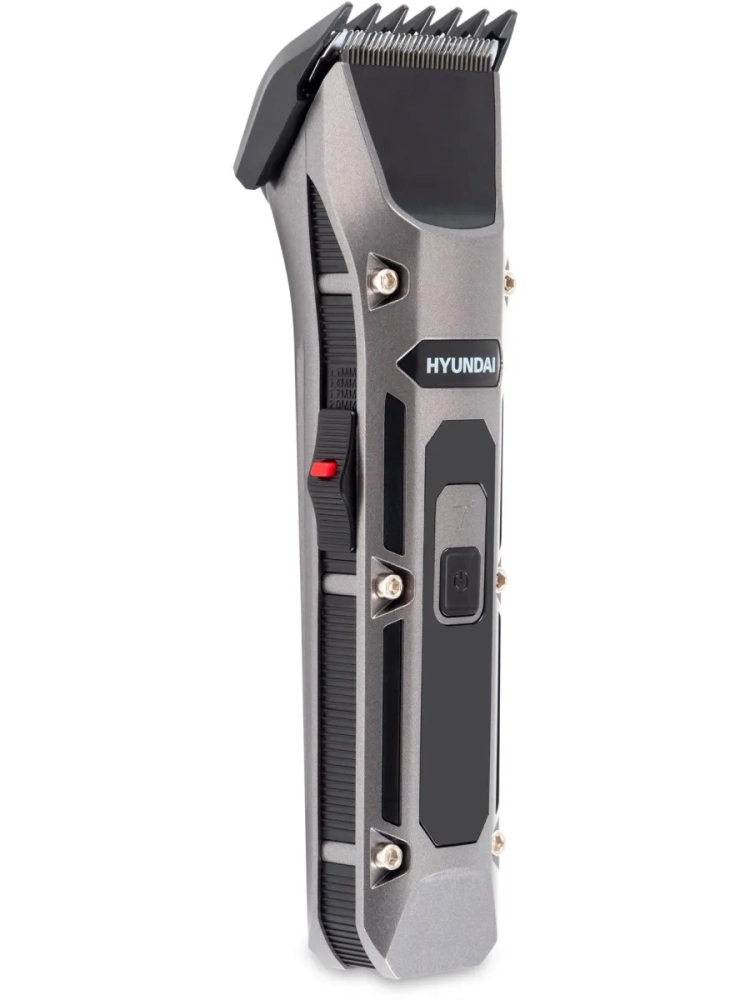 Машинка для стрижки Hyundai H-HC7115 черный, насадок в комплекте 4шт, питание от аккумулятора, зарядное устройство, масленка, подставка, щетка для чистки машинки