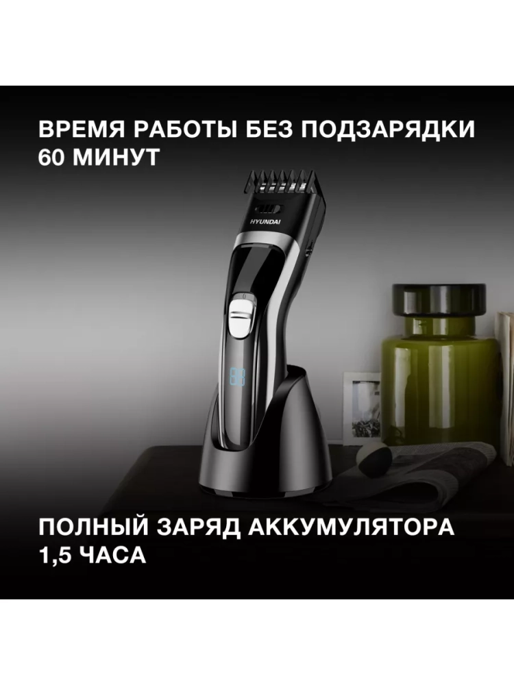 Машинка для стрижки Hyundai H-HC7117 черный, насадок в комплекте 1шт, питание от аккумулятора