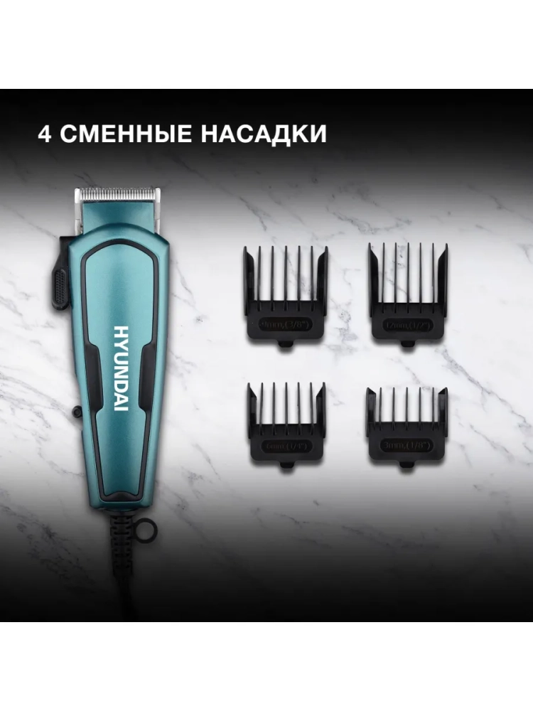 Машинка для стрижки Hyundai H-HC7171 черный/нефритовый, насадок в комплекте 4шт, питание от сети