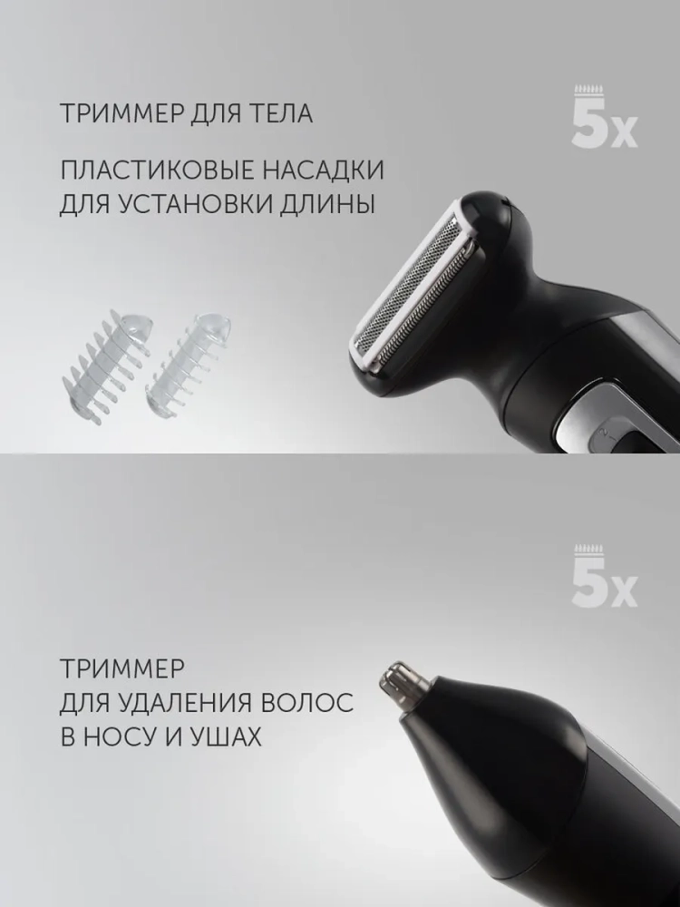 Машинка-триммер Polaris PHC 3019RC Retro 5в1 предназначена для тримминга, контуринга, дизайнерских стрижек, бритья, а также ухода за носом и ушами. Она справится с густыми волосами, жесткой щетиной и сложными контурами бороды и усов. Мощный литий-ионный аккумулятор обеспечивает до 120 минут автономной работы. Полная зарядка устройства занимает 90 минут. Прибор работает как от сети, так и от аккумулятора. Минимальная длина стрижки – 0,5 мм. В комплекте 12 насадок и лезвий: 3 лезвия-триммера из высококачественной нержавеющей стали (триммер 5 мм для фигурных и детальных стрижек, узкий триммер 20 мм для бороды и широкий триммер 38 мм для стрижки волос), насадка-триммер для удаления волос в носу и ушах, насадка-триммер для тела, триммер для тела (мини-бритва) с насадками 2 и 4 мм, 4 насадки для широкого триммера (3, 6, 9 и 12 мм) и телескопическая насадка 5-8 мм для узкого триммера. Сменные насадки для регулировки длины позволяют делать стрижки на любой вкус для всей семьи. Триммерный набор Polaris PHC 3019RC Retro ─ отличный подарок для папы, сына, мужа на Новый Год, день рождения, 23 февраля и другие праздники. Триммерный набор Polaris PHC 3019RC Retro станет настоящим помощником для всей семьи для ухода за волосами, бородой и усами. Создайте безупречный образ у себя дома с техникой для красоты и здоровья Polaris! Комплектация: • Машинка - триммер • Триммер узкий 30 мм для бороды • Триммер широкий 38 мм для стрижки волос • Триммер 5 мм для фигурных и детальных стрижек • Триммер для удаления волос в носу и ушах • Триммер для тела (мини-бритва) • Насадка на триммер для тела 2 мм • Насадка на триммер для тела 4 мм • Насадка на широкий триммер 3 мм • Насадка на широкий триммер 6 мм • Насадка на широкий триммер 9 мм • Насадка на широкий триммер 12 мм • Насадка телескопическая на узкий триммер 5-8 мм • Сумочка для хранения • Масло для смазки режущего блока • Щёточка для чистки • Зарядный шнур • Расческа • Инструкция с гарантийным талоном