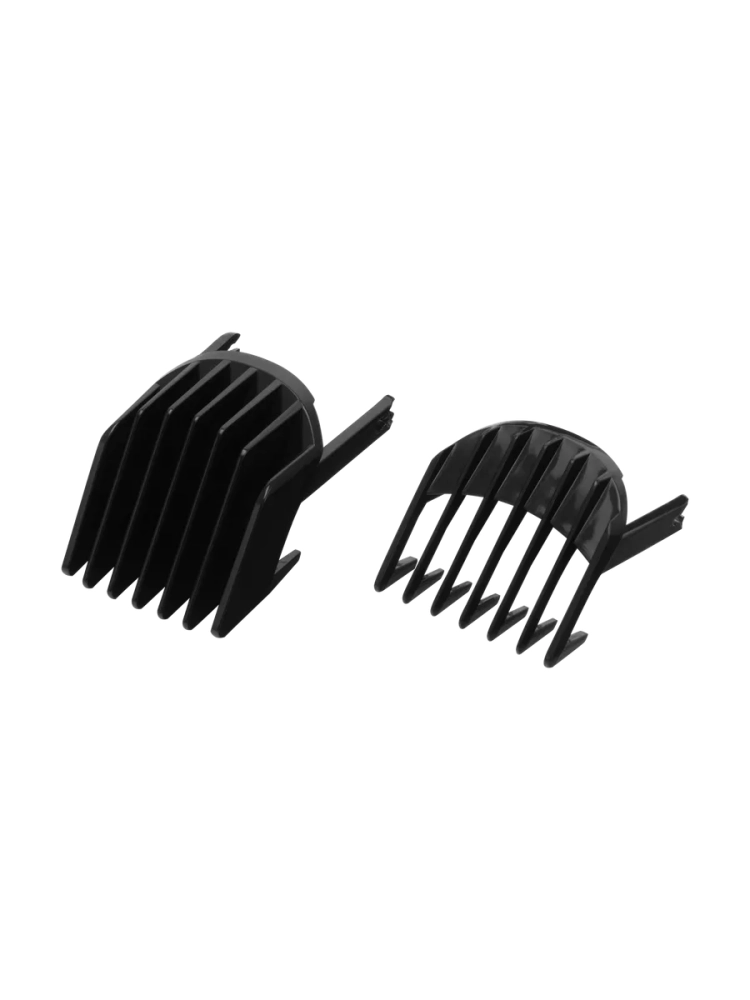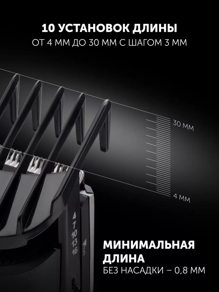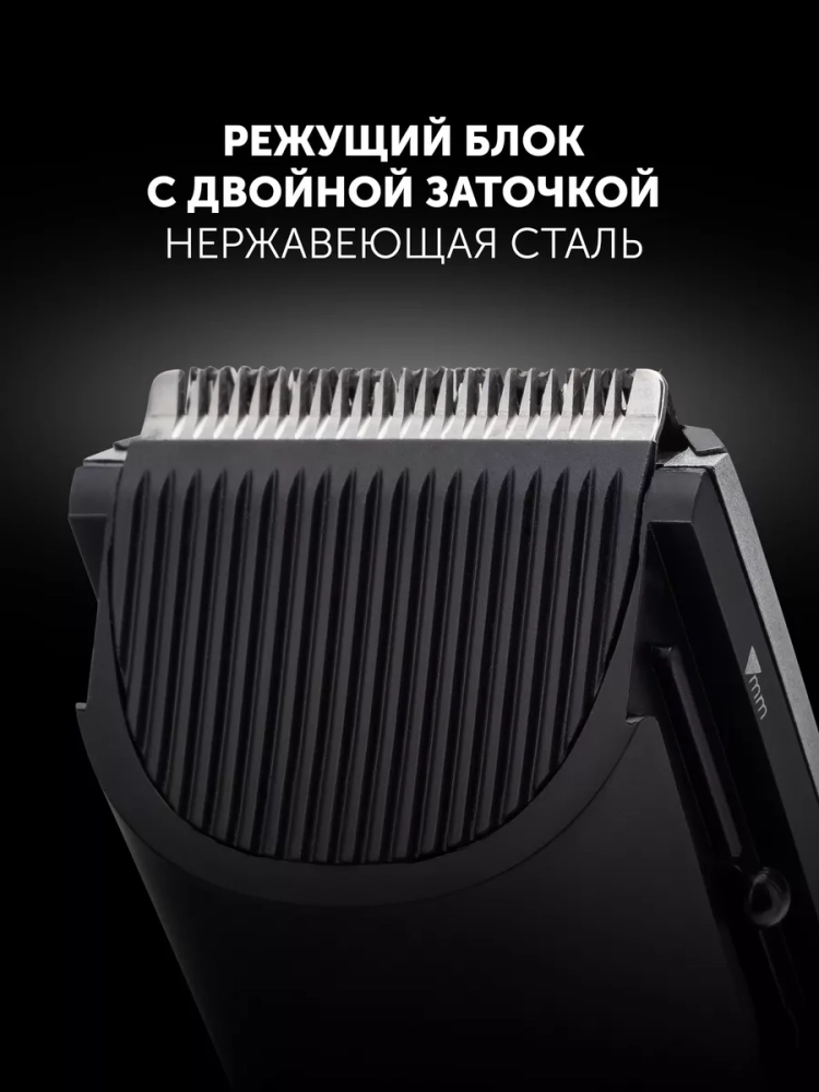Электрическая машинка оснащена лезвиями из нержавеющей стали. 2 сменные насадки и 10 установок длины позволяют точно регулировать высоту волос. Без насадок высота среза ножа составляет 0.8 мм — идеально для филировки и контуров висков на лице.
