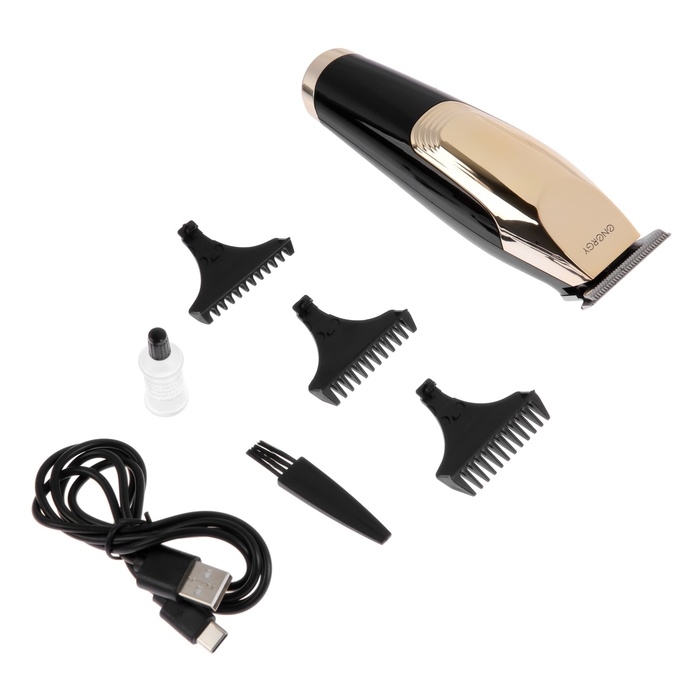 Машинка для стрижки Energy EN-748, 3 Вт, 0,5/1/1,5 мм, нерж.сталь, АКБ, чёрно-золотистая