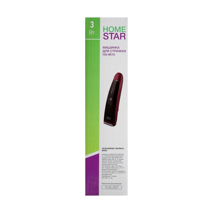 Машинка для стрижки HOMESTAR HS-9010, 3 Вт, 1 насадка 1-8 мм, нерж. сталь, от АКБ, бордовая