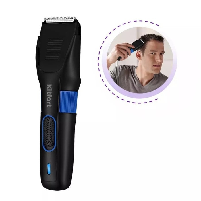 Машинка для стрижки Kitfort КТ-3130-3, 3.6 Вт, 2 насадки, АКБ, чёрно-синяя