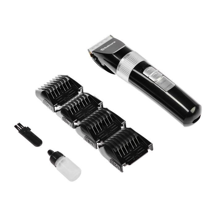 Машинка для стрижки Sakura SA-5177BK, 4 насадки, 3/6/9/12 мм, керамика, АКБ, чёрная