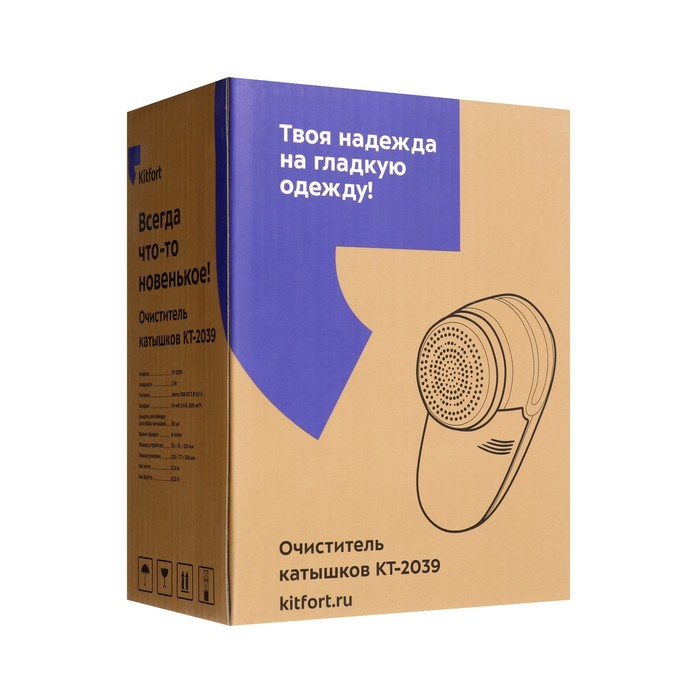 Машинка для удаления катышков Kitfort КТ-2039, 2 Вт, от АКБ, бело-сереневая