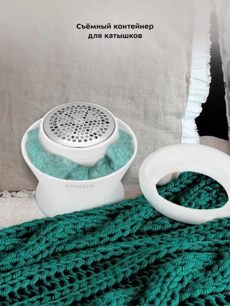 Очиститель катышков Kitfort KT-4012 вернет вашей одежде ухоженный вид, счистив с нее появившиеся катышки. Катышки появляются на одежде из-за неправильного ухода, частой и неправильной стирки, износа или из-за примеси полиэстера в тканях на одежде. Принцип работы схож с электробритвой — защищенный металлической сеточкой блок ножей срезает комки ворса с поверхности ткани. Съемный блок ножей сделан из нержавеющей стали. Комки ворса попадают в контейнер, который надо периодически очищать. В комплекте идет щеточка, которая предназначена для очистки ножей. Прибор работает от аккумулятора, поэтому его можно брать с собой в путешествия или на работу — он с легкостью поместится в маленькой сумке. Прибор небольшой и легкий по весу. Компактные размеры прибора избавляют от проблемы хранения устройства. Заряжается прибор быстро, а также его можно включать, когда он подключен к зарядке. Прибор можно использовать для любых тканей из хлопка, шерсти или льна. Удобная подсветка позволит вам лучше очистить ткань и не пропустить очень маленькие катышки.