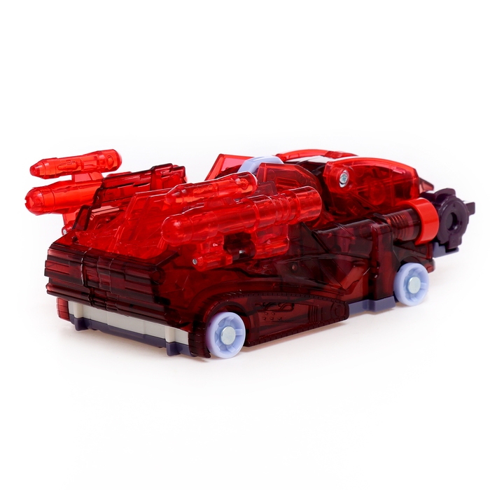Машинка-трансформер обладает прочной конструкцией с надежными креплениями. Играть можно где угодно. Никаких дополнительных приспособлений вам не потребуется. Товар сертифицирован. Игрушка упакована в коробку с окном.