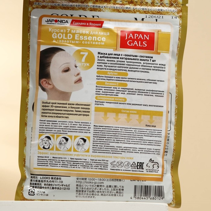 Маска для лица JAPAN GALS с экстраком золота, 7 шт