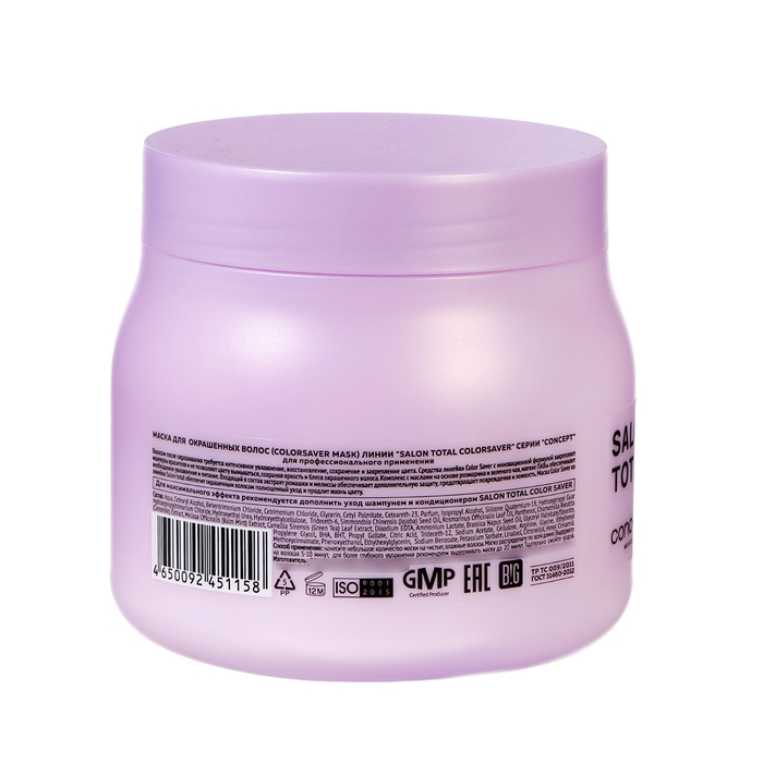 Волосам после окрашивания требуется как интенсивное увлажнение и восстановление, так и сохранение и закрепление цвета. Профессиональная маска SALON TOTAL Color Saver с инновационной формулой закрепляет молекулы красителя и не позволяет цвету вымываться, сохраняя яркость и блеск окрашенного волоса. Регулярное использование средств линейки Color Saver обеспечит окрашенным волосам полноценный уход и продлит жизнь цвету. Маска Color Saver из линейки SALON TOTAL обеспечит окрашенным волосам полноценный уход и продлит жизнь цвету.