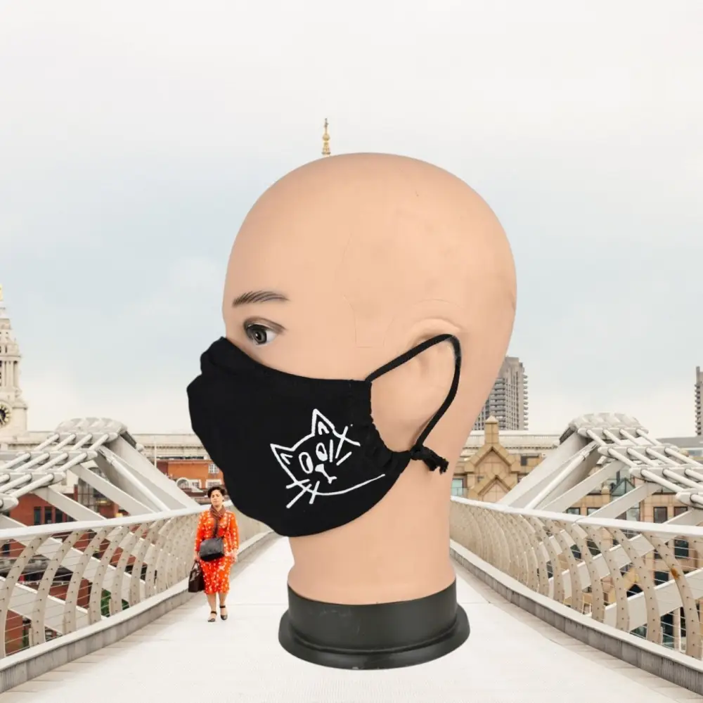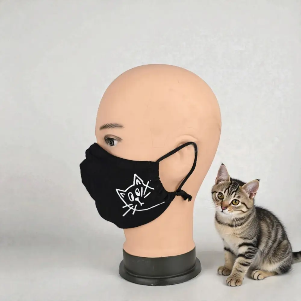 Маска многоразовая двухслойная лого котик (ткань,100% х/б)