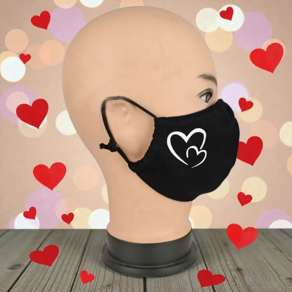 Маска многоразовая двухслойная лого сердечки (ткань,100% х/б)